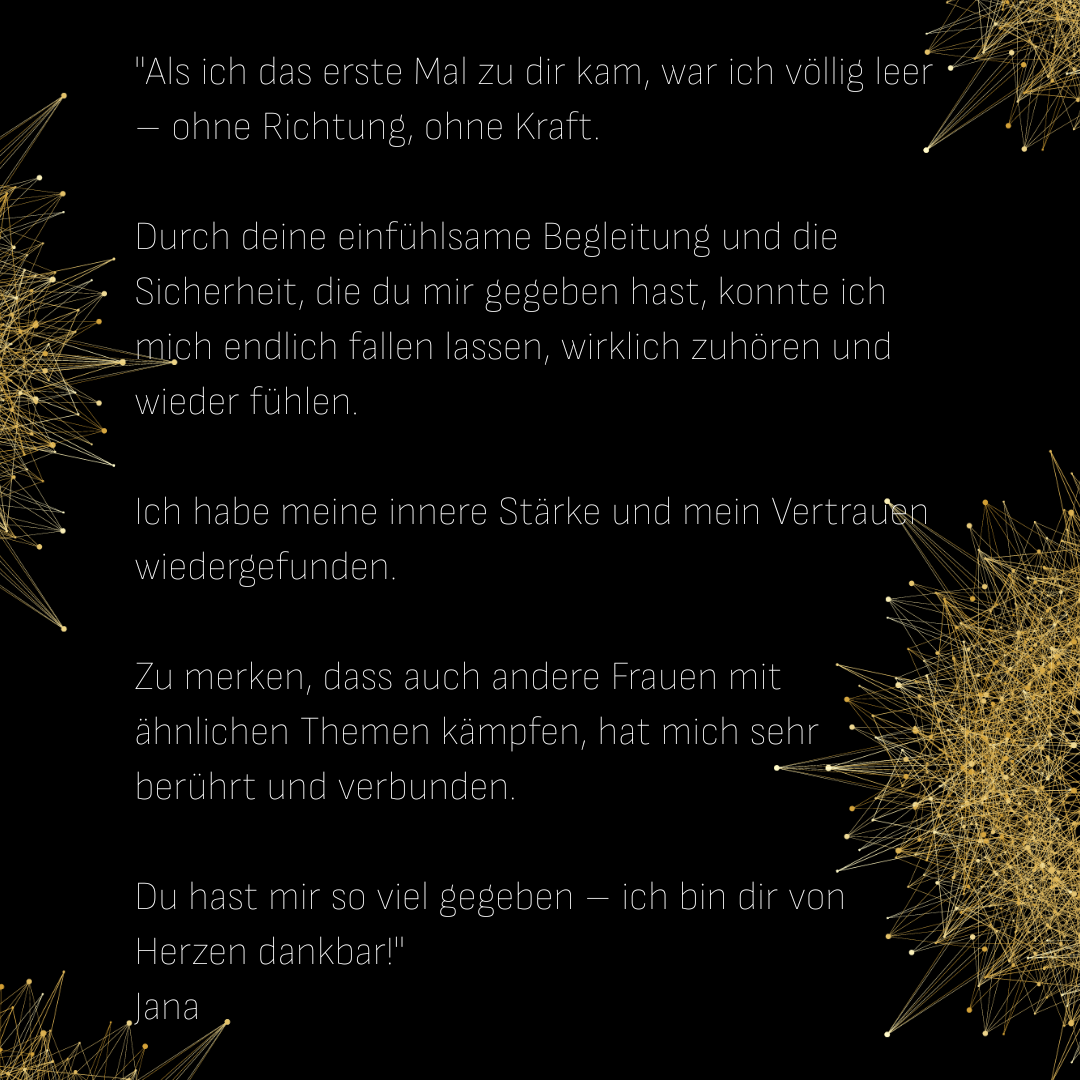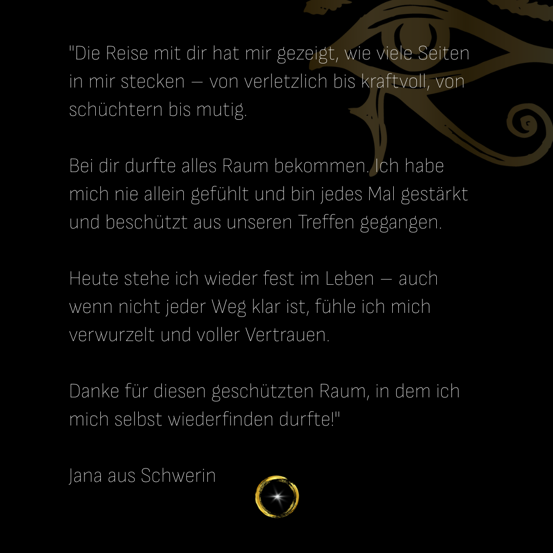 Ich sehe dich. Ich halte dich. Ich begleite dich – durch deine tiefsten Prozesse. Durch die Dunkelheit deiner Zweifel. Bis du wieder spürst: Wer du wirklich bist. Und wie viel Licht du in Wahrheit bist.
